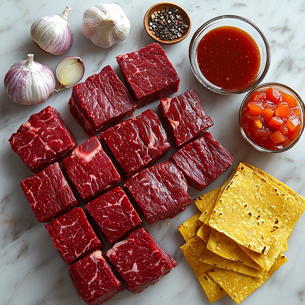 These ingredients are simple staples, but each plays a crucial role in crafting the bold, balanced flavors of the birria. From the tender beef chuck roast to the aromatic dried chilies and fresh garlic, you’ll find that their combination creates a sauce that is both hearty and vibrant, while the corn tortillas provide the perfect crunchy contrast.