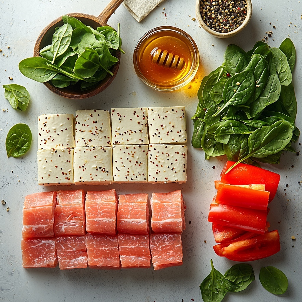 Start by gathering all your ingredients and prepping the vegetables. Thinly slice the red bell pepper and wash the spinach thoroughly. Having everything ready helps the assembly go smoothly and quickly.