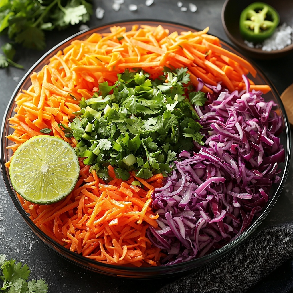 You can use finely shredded green and purple cabbage along with grated carrots if you prefer to prepare your own mix. This lets you control textures and freshness perfectly.