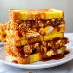 A decadent French Toast Fried Chicken Sandwich featuring crispy buttermilk-marinated chicken thighs fried to golden perfection, nestled between buttery brioche French toast slices and drizzled with a luscious bourbon sweet chili sauce. This recipe combines sweet, spicy, and savory flavors for a satisfying and indulgent meal.