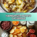 This hearty Hamburger Potato Casserole combines layers of tender sliced potatoes, seasoned ground beef, and a creamy cheddar cheese sauce, all topped with a golden blend of cheddar and mozzarella cheeses. Baked to perfection, this comforting casserole makes for a satisfying family meal or a crowd-pleasing dinner option.