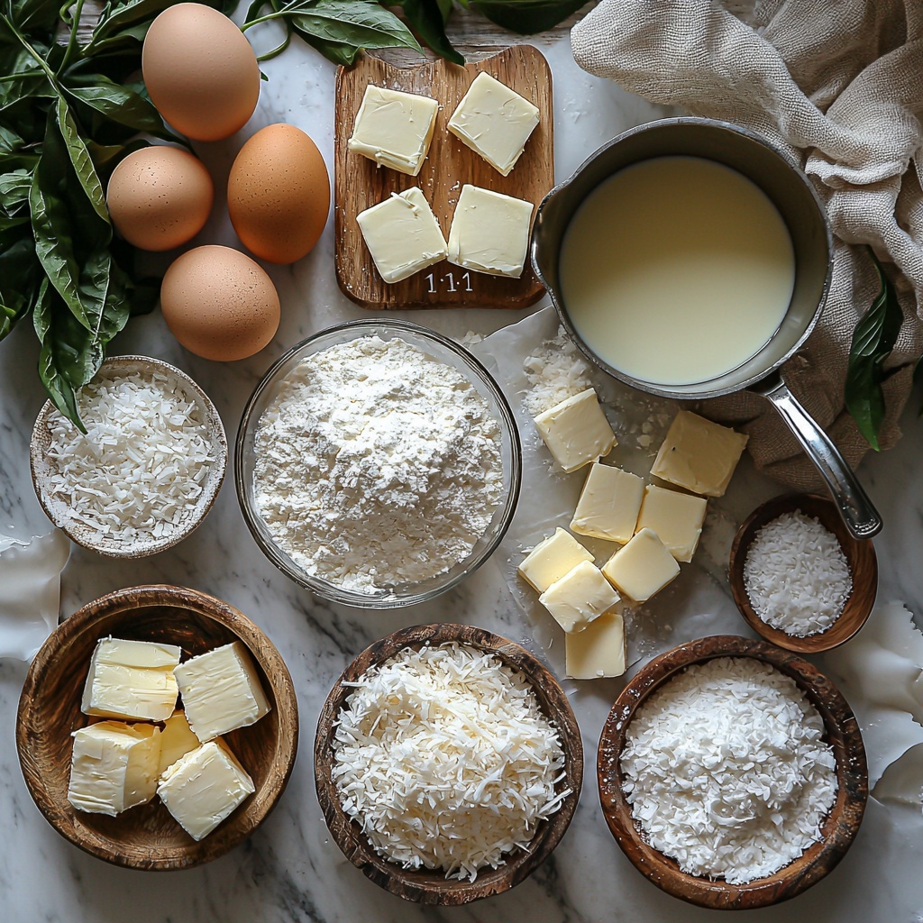 This Heavenly Coconut Cream Cake Recipe relies on a few simple, wholesome ingredients that work harmoniously to create its unforgettable flavor and texture. Each ingredient plays a crucial role in ensuring that the cake is moist, fluffy, and bursting with coconut goodness from the crumb to the frosting.