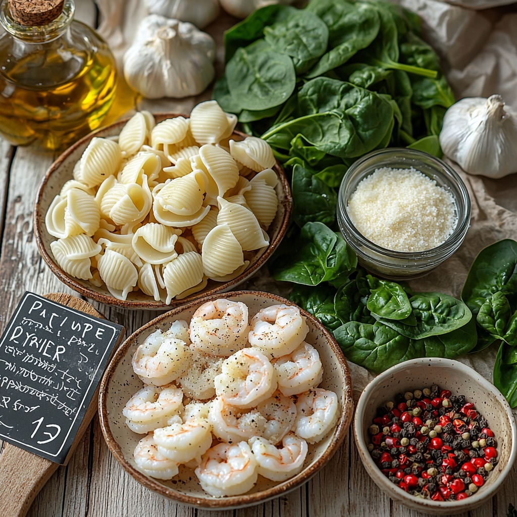 The magic of the Indulgent Creamy Spinach Mushroom Shrimp Shells Recipe truly starts with a handful of simple but thoughtfully chosen ingredients. Each element plays a vital role — from the fresh vegetables adding color and freshness, to the hearty shrimp lending a satisfying bite, and the cheese and cream weaving everything together in a silky embrace.