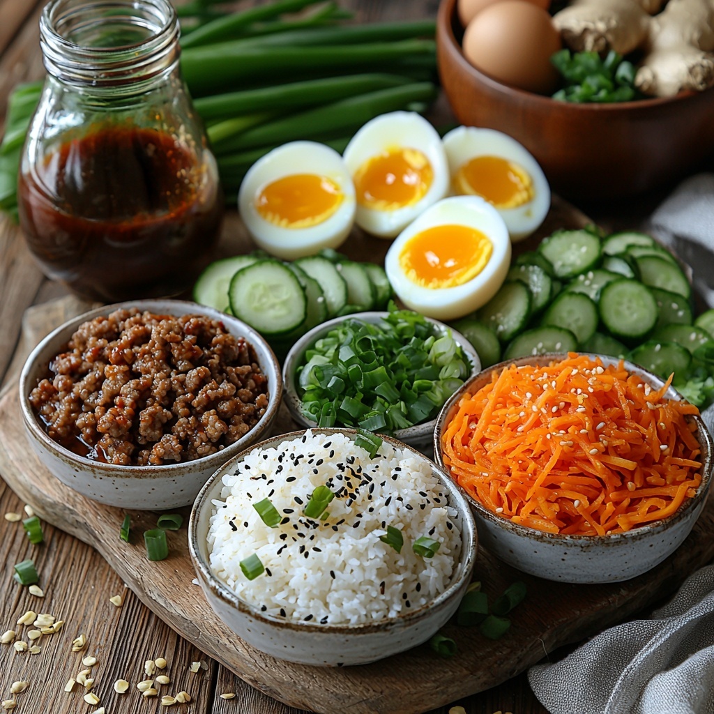The magic behind this recipe is in its straightforward ingredients, each playing a crucial role to create the perfect balance of taste and texture. The combination of ground beef and pork makes the meatballs incredibly juicy while the garlic and ginger add that signature Korean BBQ punch. The fresh vegetables and soft-boiled eggs bring brightness and variety to every bowl.