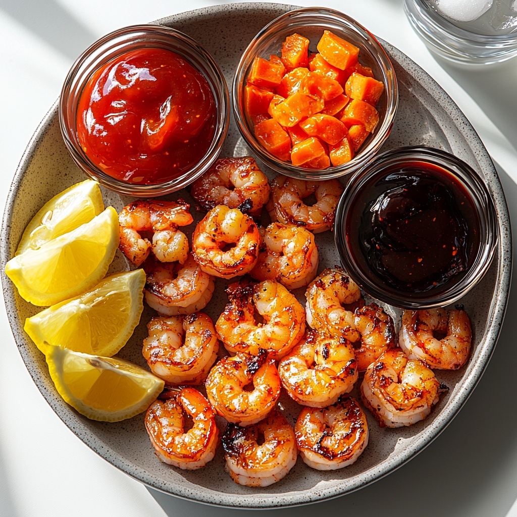 Lemon wedges are the ultimate classic garnish for shrimp cocktail, adding a crisp citrus brightness that complements the rich sauce and sweetness of the shrimp. Fresh parsley or a sprinkle of paprika can also add a splash of color and subtle herbal notes.