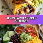 These Seven Layer Chicken Burritos are a deliciously layered meal combining tender shredded rotisserie chicken, flavorful black beans, seasoned rice, and fresh toppings all wrapped in a warm, crispy tortilla. Perfectly grilled until golden and satisfying, they bring Mexican-inspired flavors to your table with a quick and easy cooking process.