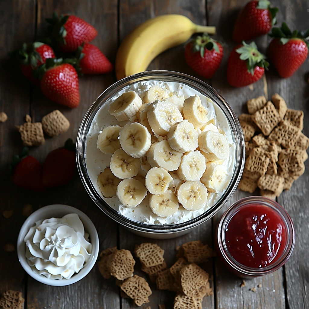 Grab your favorite serving dish or individual cups and begin with a generous layer of crushed vanilla wafers or graham crackers for that essential crunch. Next, spoon in a layer of the banana cheesecake mixture, then drizzle some strawberry sauce on top. Add fresh strawberry pieces and banana slices as the next layer. Repeat these layers until all components are used, topping off with an extra sprinkle of crushed cookies and fresh fruit for a picture-perfect finish.