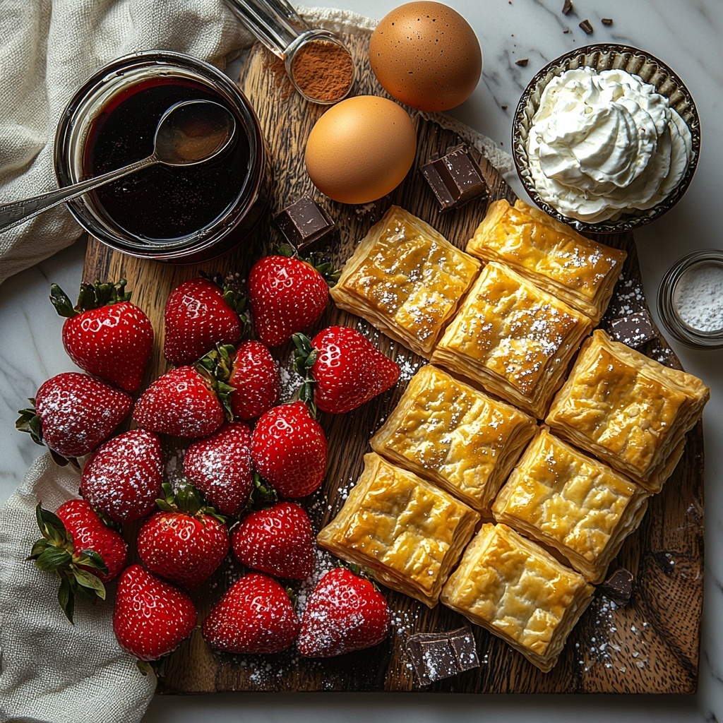 This Strawberry Puff Pastry Hearts Recipe shines because of its straightforward yet thoughtfully chosen ingredients. Each one plays a crucial role in delivering balancing textures and flavors, from flaky pastry to fresh fruit and luscious cream.