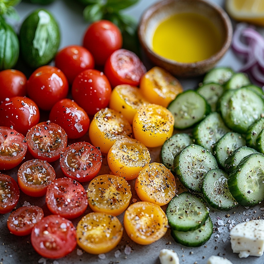 - Yellow cherry tomatoes: These bring a subtle sweetness and a beautiful golden hue that makes the salad visually exciting.